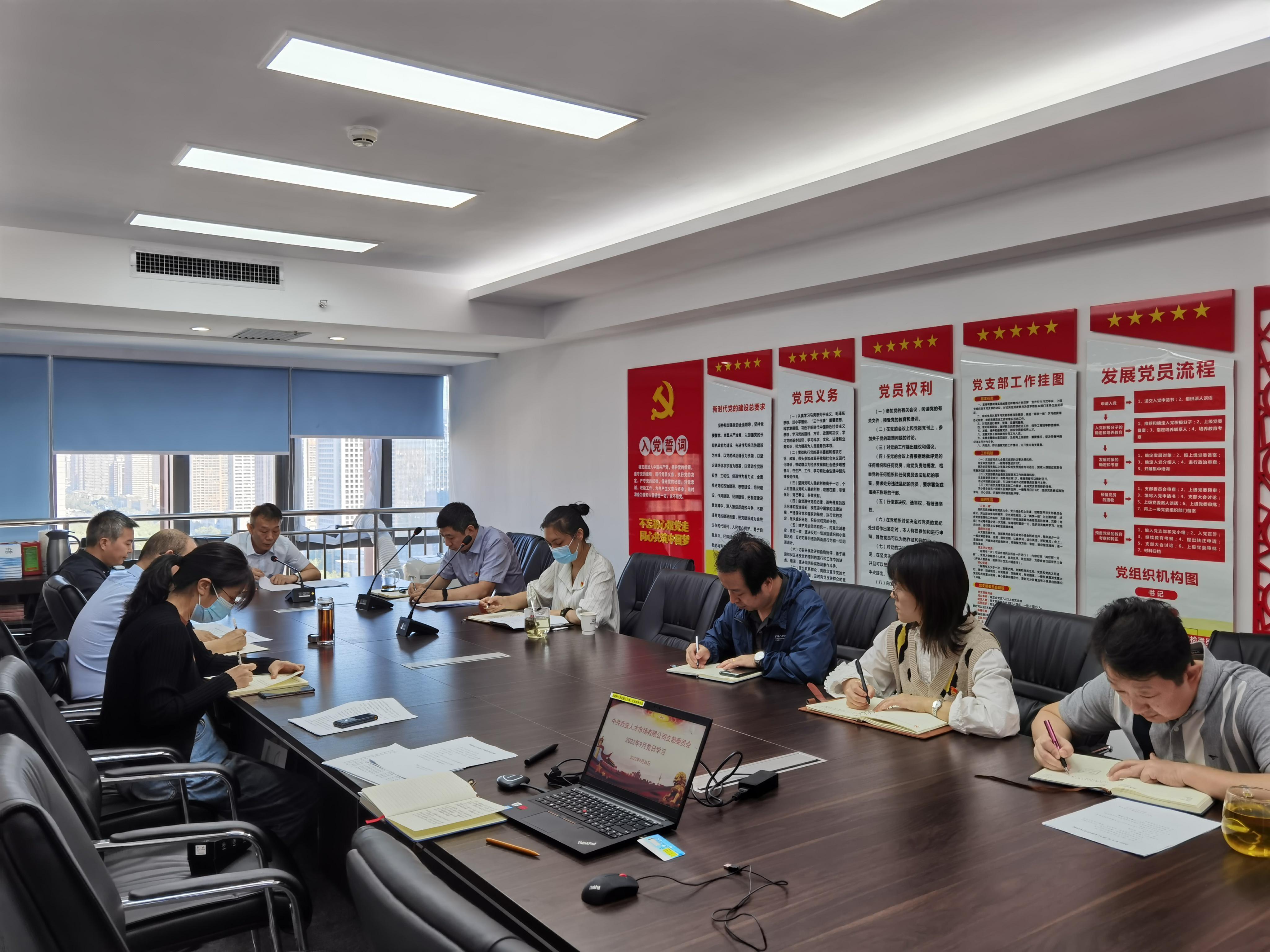 2022年9月28日上午,西安人才市場有限公司黨支部組織作風建設專項行動專題集體學習。公司全體黨員、黨員發(fā)展對象、各部門負責人參會,子公司副總以上管理人員同步視頻參會。